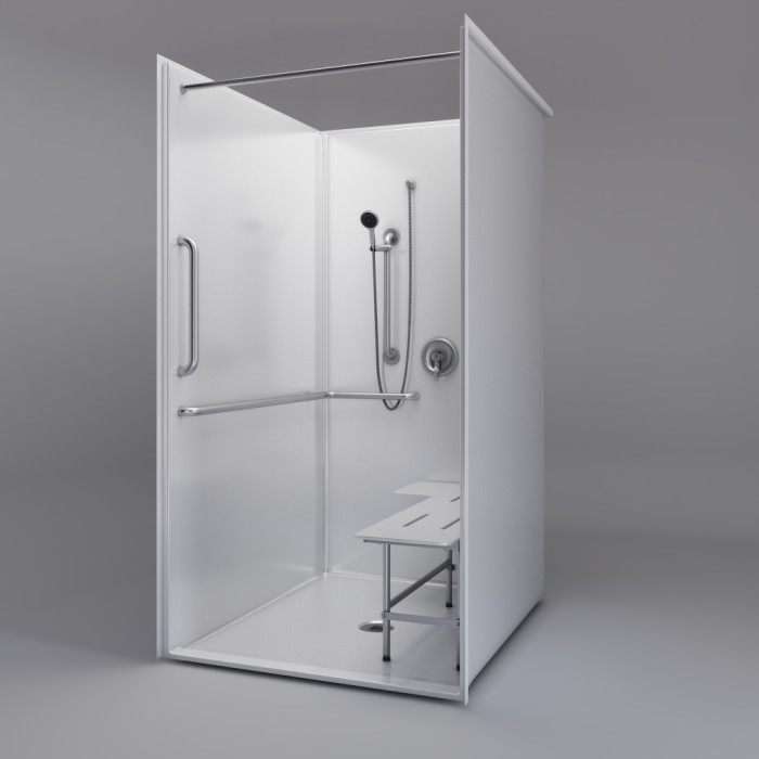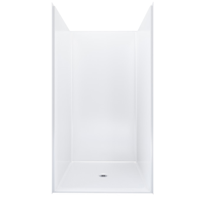Fully reinforced walls provide the support needed for accessory installation, and factory-installed options are available when the project calls for a more complete setup. Available accessories include a fold-up L-shaped shower seat with legs, grab bars, a recessed soap dish, curtain rod, and drain with stainless steel strainer. Made in the USA and backed by a 30-year warranty, this shower is built for projects that need reliable performance without wasting space.