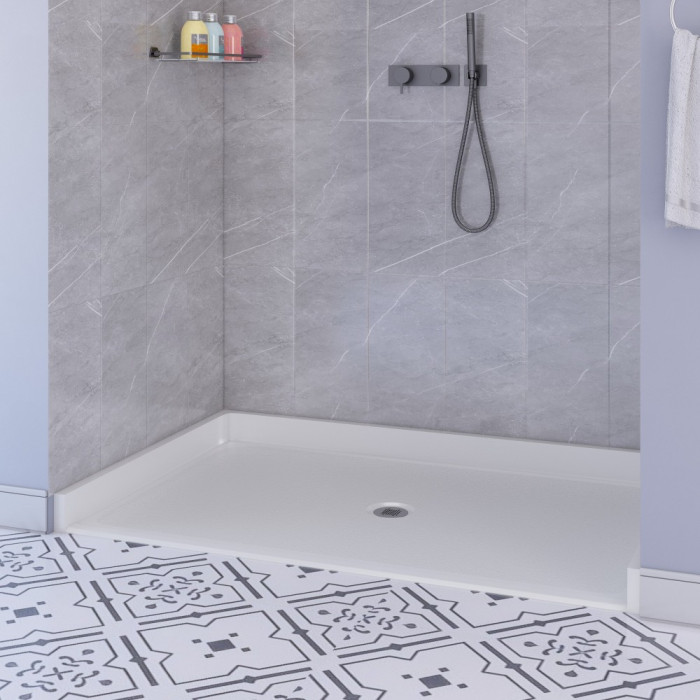 Reinforced fiberglass construction provides a sturdy shower base, and the slip-resistant, textured floor has an easy-to-clean, gelcoat finish. Add your custom tile walls to create a stylish bathroom. Add available grab bars and shower seats to provide a safe shower experience.