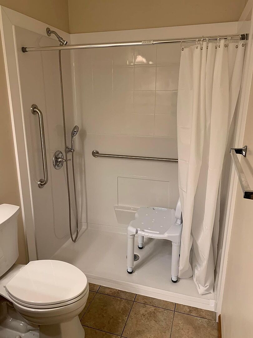 One of most popular Freedom Accessible Showers, the 60" x 33⅜" five-piece barrier free shower fits in the same space as a standard 5’ bathtub and is ideal for remodeling a residential accessible bathroom.
